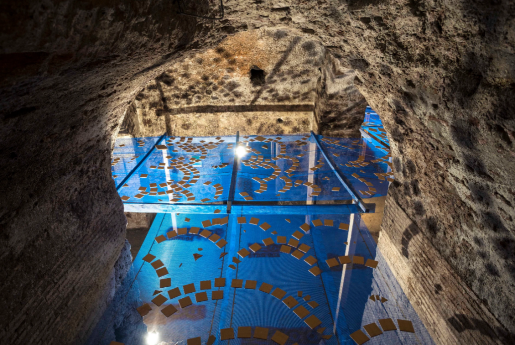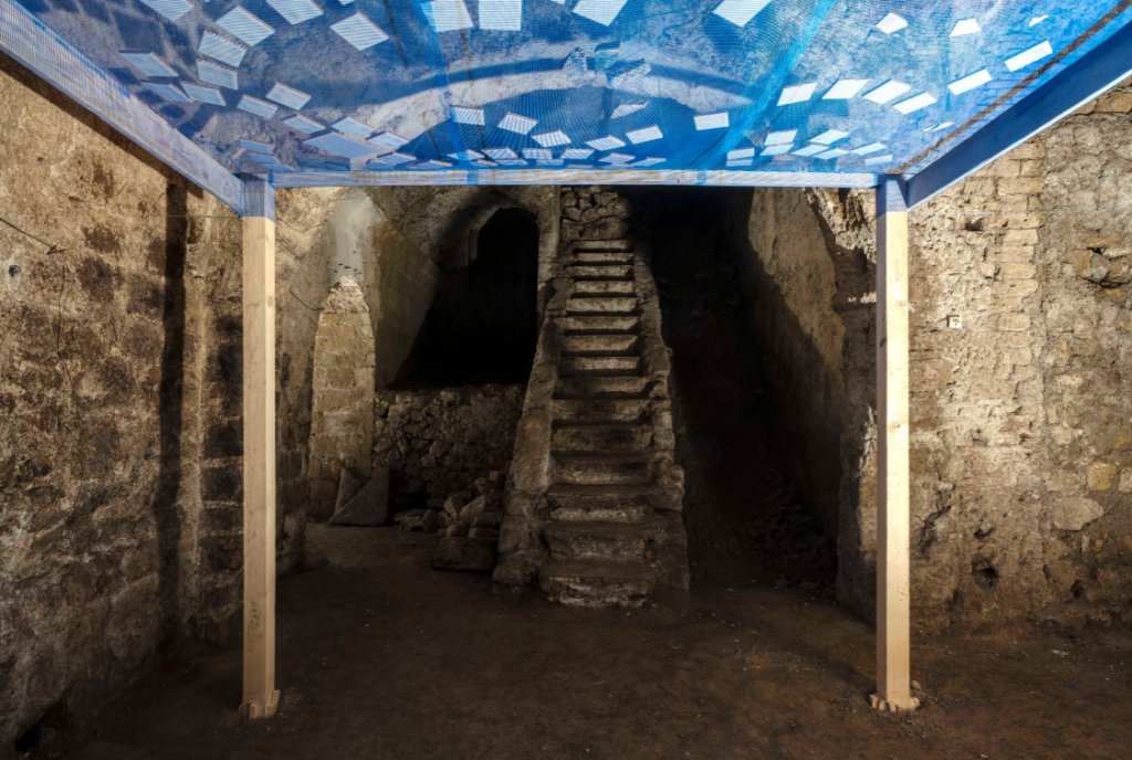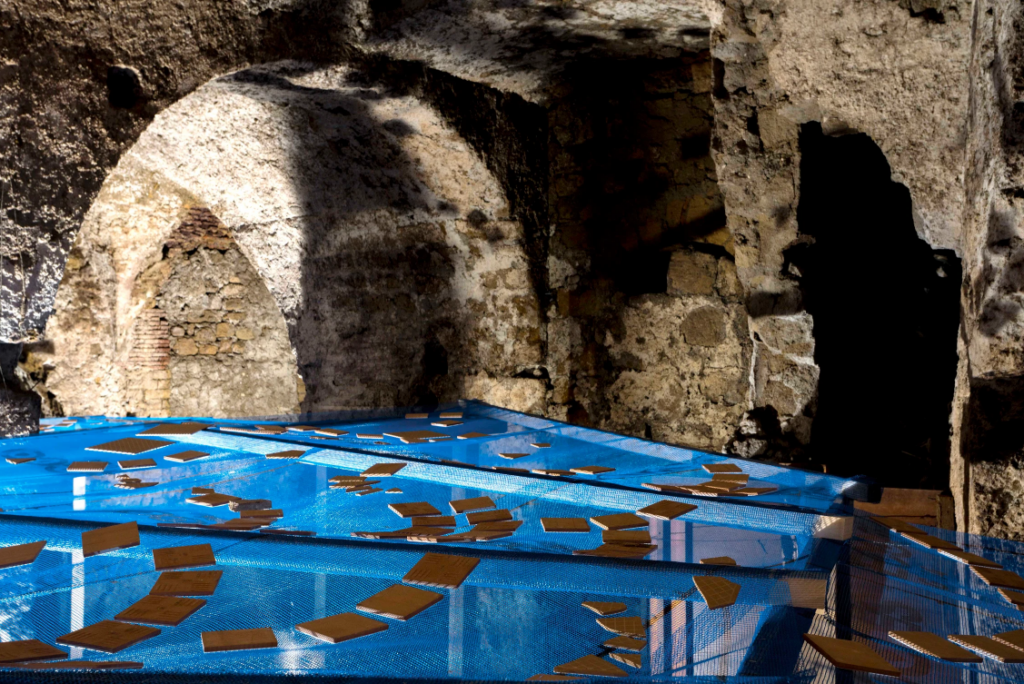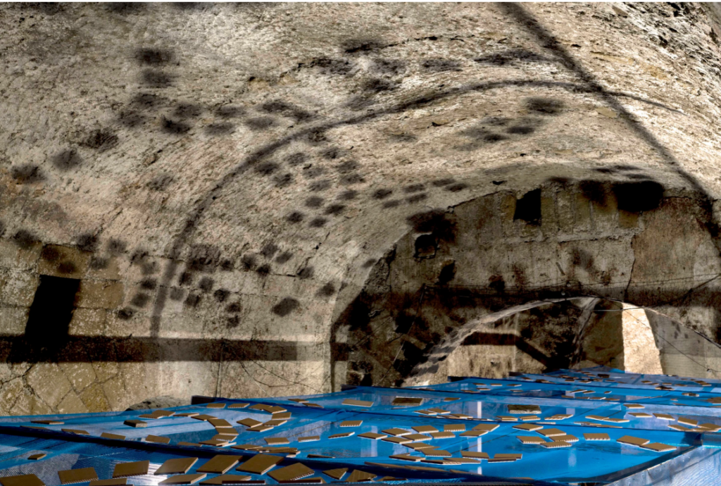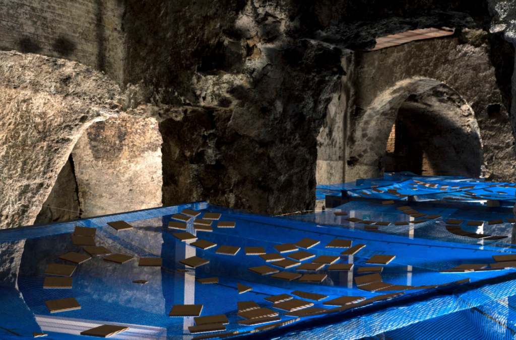 Per Napoli, l’artista turca ha realizzato un’installazione avvolgente, in grado di coinvolgere lo spettatore facendolo sentire come immerso in un bacino d’acqua. Catapultando la prospettiva di visione, dal fondo dell’acqua verso le fondamenta della città, l’installazione lascia emergere suggestioni derivanti da storie dell’antica città di Napoli che si fondono con le stratificazioni dell’acquedotto.