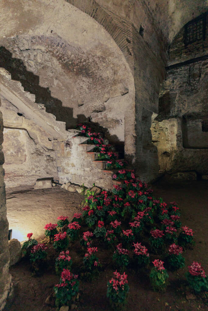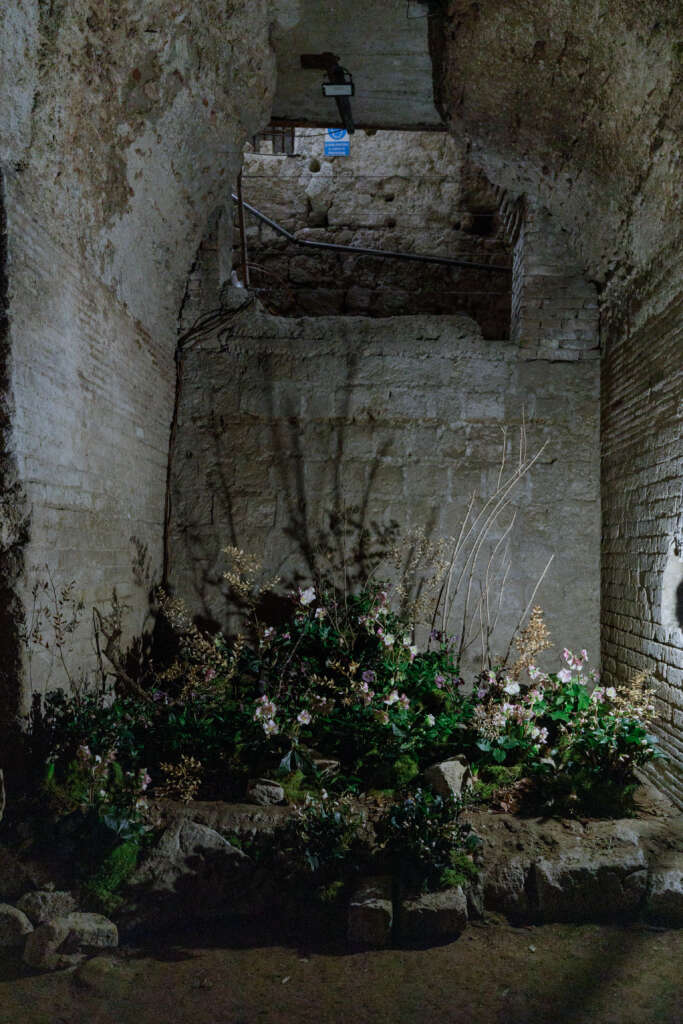 In un contesto storico e suggestivo come l’Acquedotto Augusteo, la vita rinasce e svanisce ciclicamente. Questo dinamismo si manifesta nelle composizioni organiche di Julia, che ha selezionato con cura varietà botaniche capaci di prosperare nel periodo invernale. Il rispetto della stagionalità diventa così centrale: ogni elemento è governato dal ritmo della natura e scandito dal tempo.