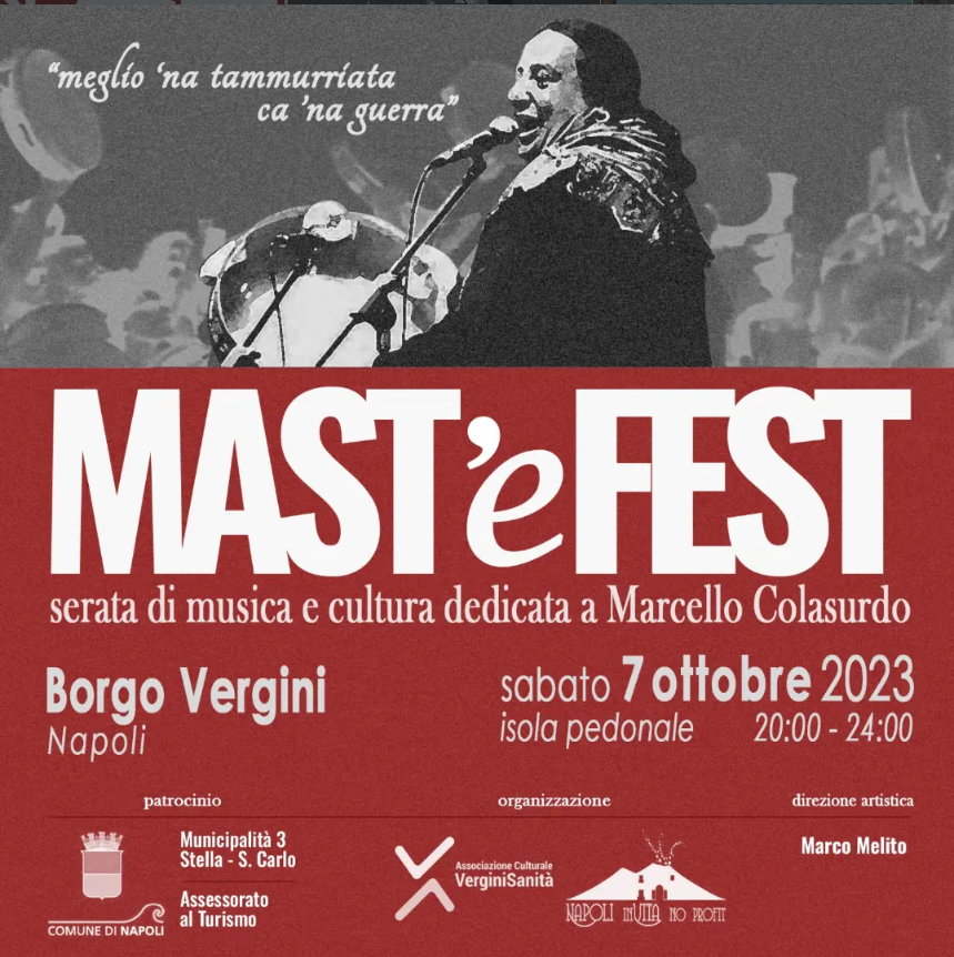 “Meglio ‘na tammurriata, ca ‘na guerra” Ispirandosi al lavoro artistico e al pensiero del compianto Marcello Colasurdo e sotto la direzione artistica di Marco Melito, lo spettacolo di intrattenimento prevede la partecipazione di famosi gruppi legati alla tradizione della Tammorra, allievi e amici di Marcello: Antonio Matrone, detto ‘o Lione, accompagnato dalla sua Paranza, ‘a Frasca – Gruppo Scettici per la Tradizione, e ancora Marco Melito, Albachiara De Lucia, Valentina De Renzo, Cicetto Guadagno.