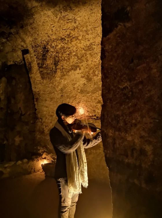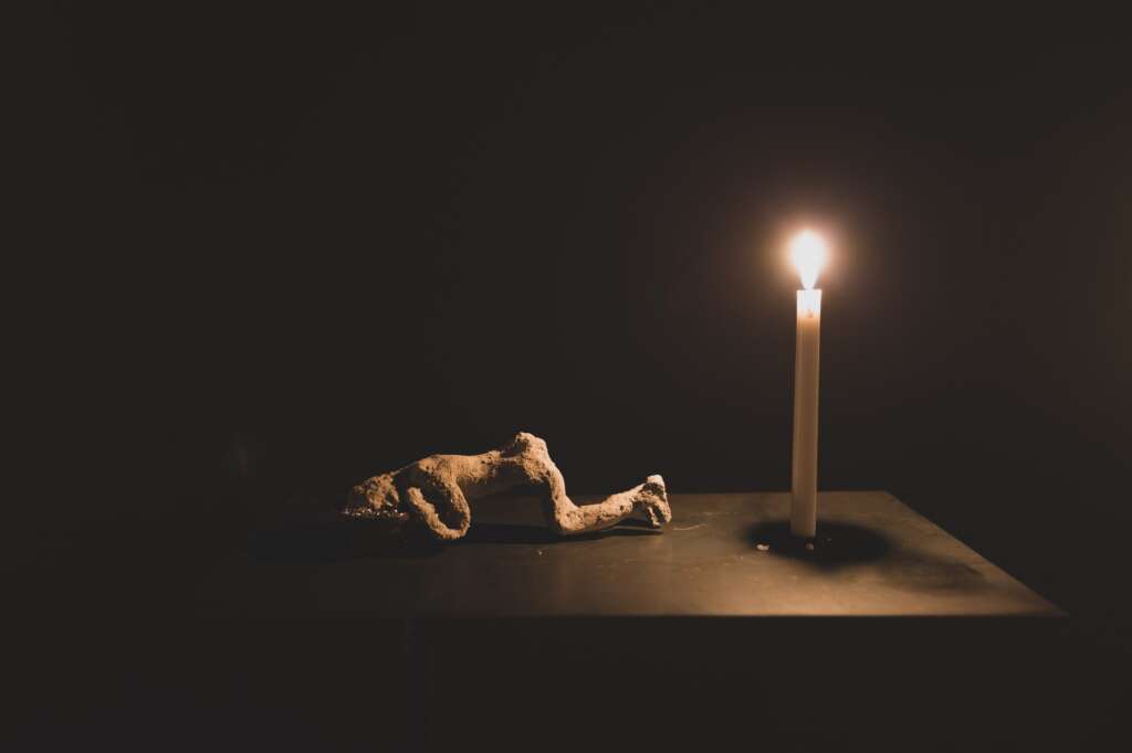 Dunque, a seguire, parte integrante del lavoro è stato un inquieto girovagare tra i luoghi ipogei della città, nell’intento di trovare lo spazio che meglio avrebbe potuto esaltare le nostre sculture, e viceversa. Ne abbiamo visitati molti ma per i più diversi motivi nessuno ci convinceva appieno. Fino a quando siamo approdati negli spazi dell’Acquedotto Augusteo del Serino ed è stato per noi una folgorazione.
